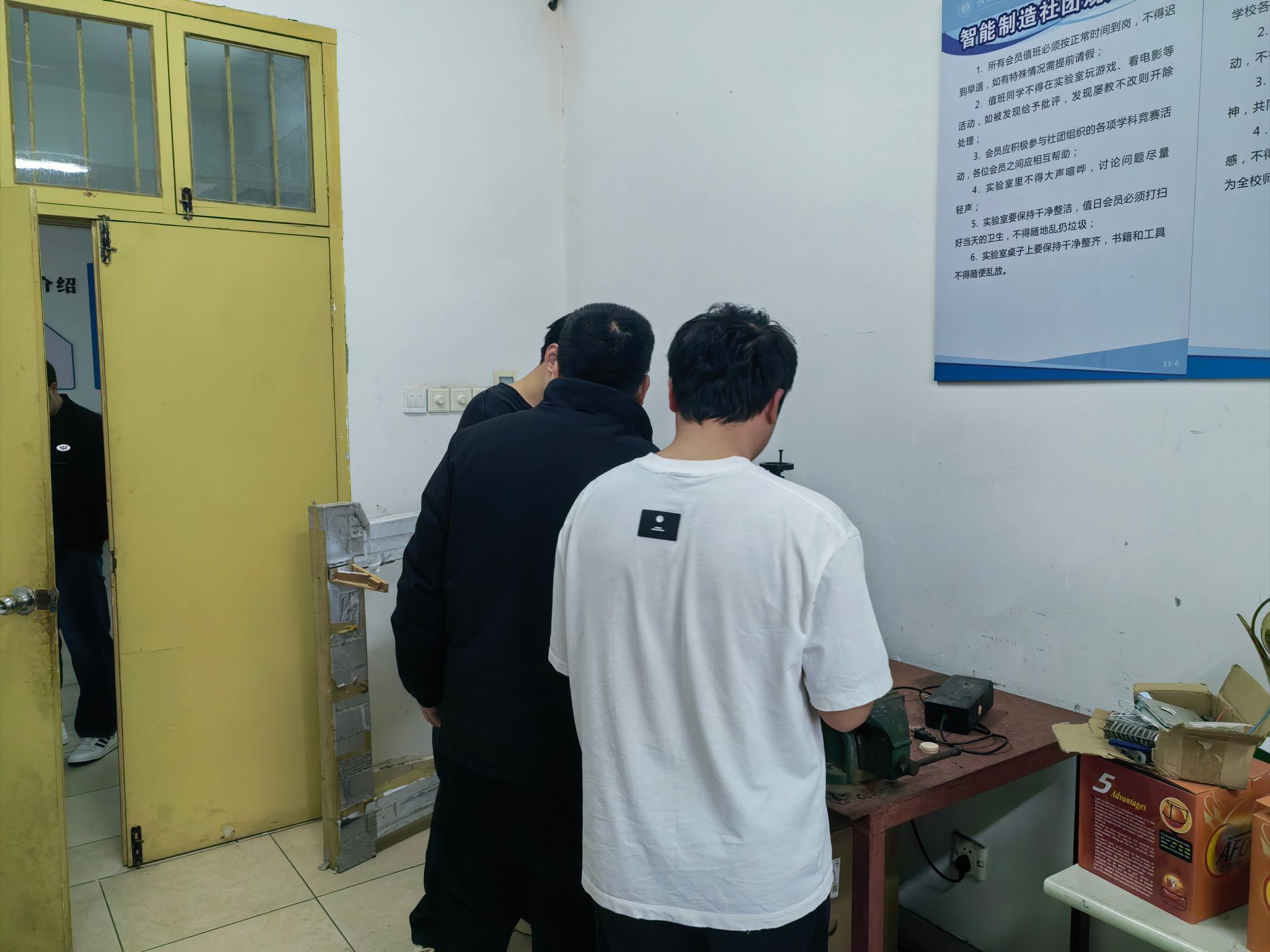 此次检查组重点走访了机电类实验室(包括机器人实验室、电工电子实验室等)和材料化学类实验室(包括基础化学实验室、冶金基础实验室等),同时对学生社团活动场地进行了安全检查。检查过程中,检查组坚持"全覆盖、零死角"原则,围绕实验室用电安全、危险化学品管理、消防设施设备、仪器设备运行状态、安全标识设置及应急通道畅通情况等关键环节进行了细致排查。针对检查中发现的安全隐患,检查组现场提出整改意见,要求相关实验室管理员立行立改,确保整改到位。